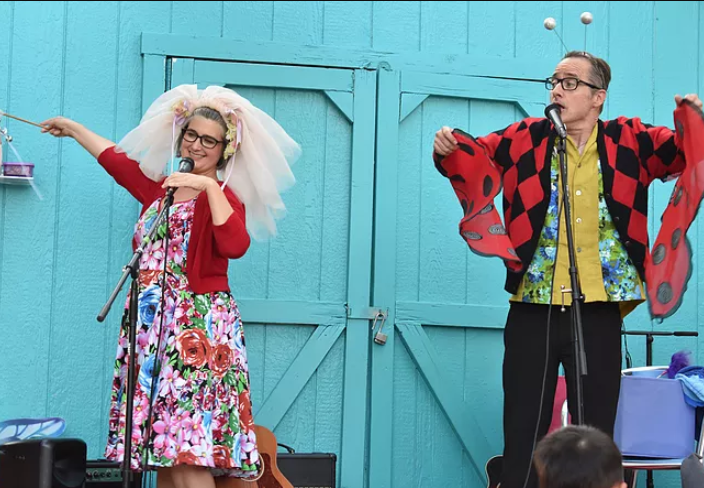 Mömandpöp creators, songwriters Bobby Matthews and Virginia Ralph have been working with kids, music, art, and theatre in some capacity since they met at Arkansas Governor’s School in 1985. They are a husband and wife musical comedy duo who have been performing together as Mömandpöp since 2015. Their two CDs, “Mömandpöp” and “Look Closer” both won Parents’ Choice Silver Honor awards, and their song “Take Care” was a #1 chart topper on Kids Place Live. A Mömandpöp live show is highly interactive, with colorful characters and fast costume changes, as Mömandpöp have several “guests” that make appearances!